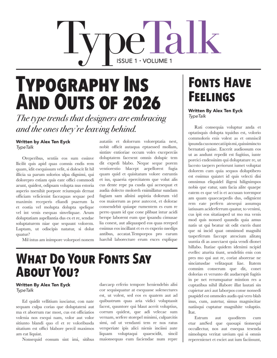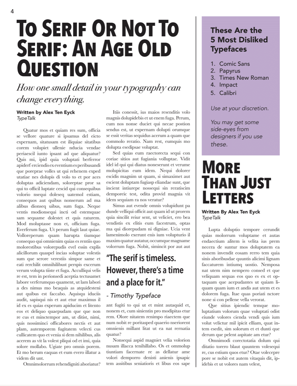 Used Adobe InDesign to design a newsletter layout with contrasting design elements, clean sectioning, consistent spacing, lists and pull quotes.