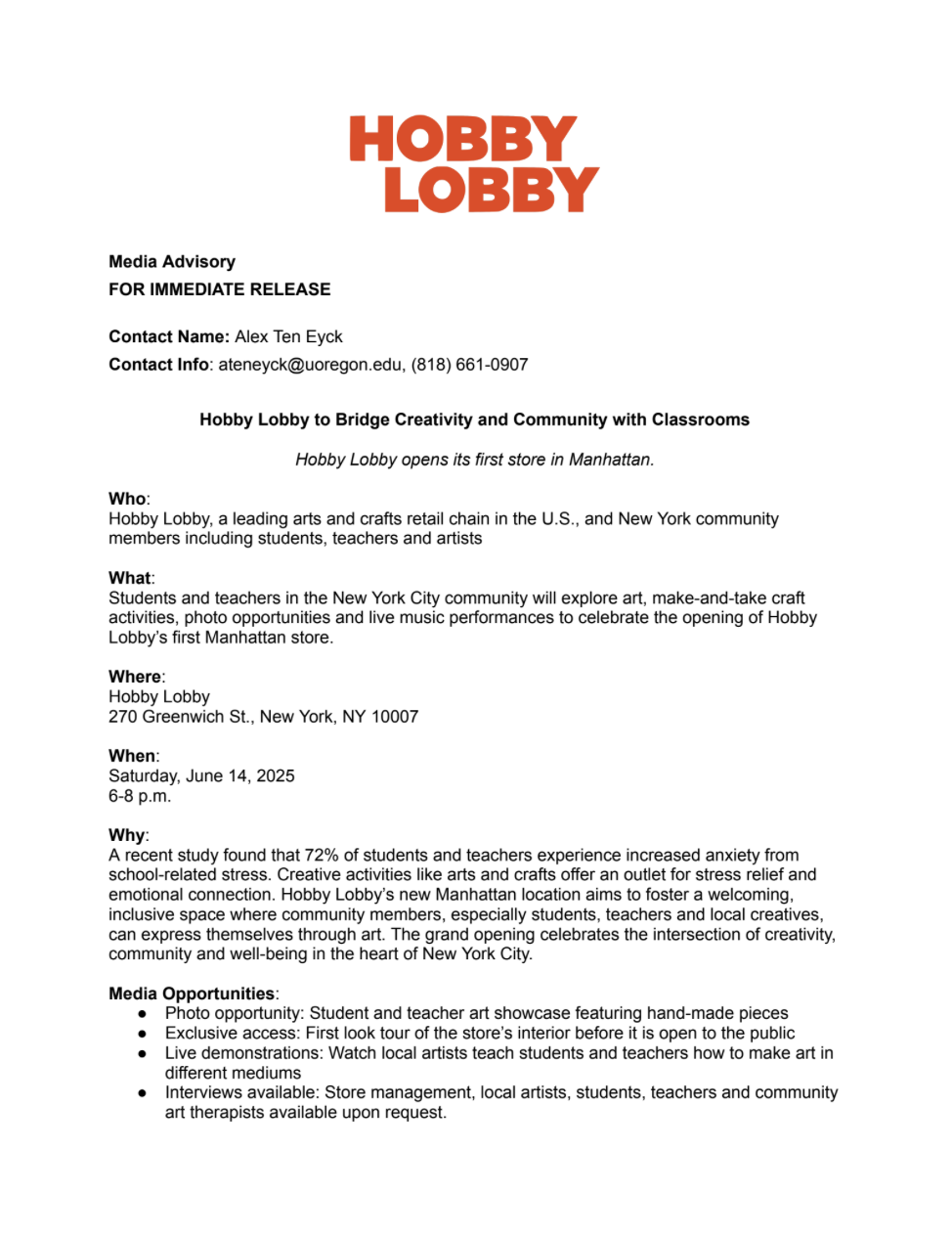 Media Advisory Sample